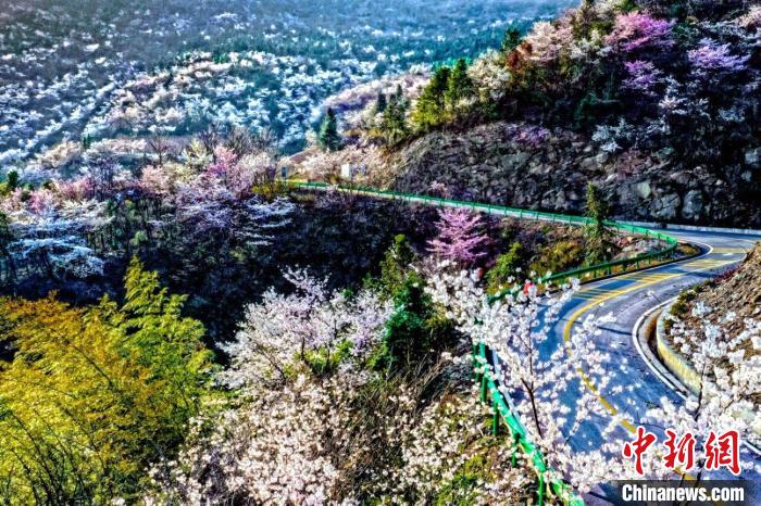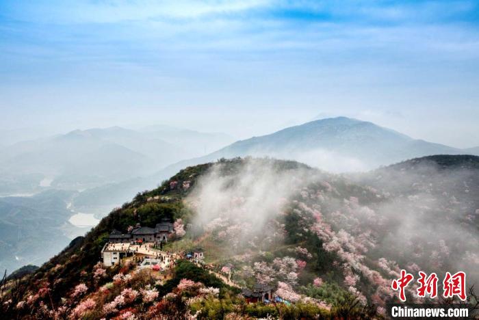 航拍赤壁市葛仙山野樱花群(资料图)。咸宁市文化和旅游局供图