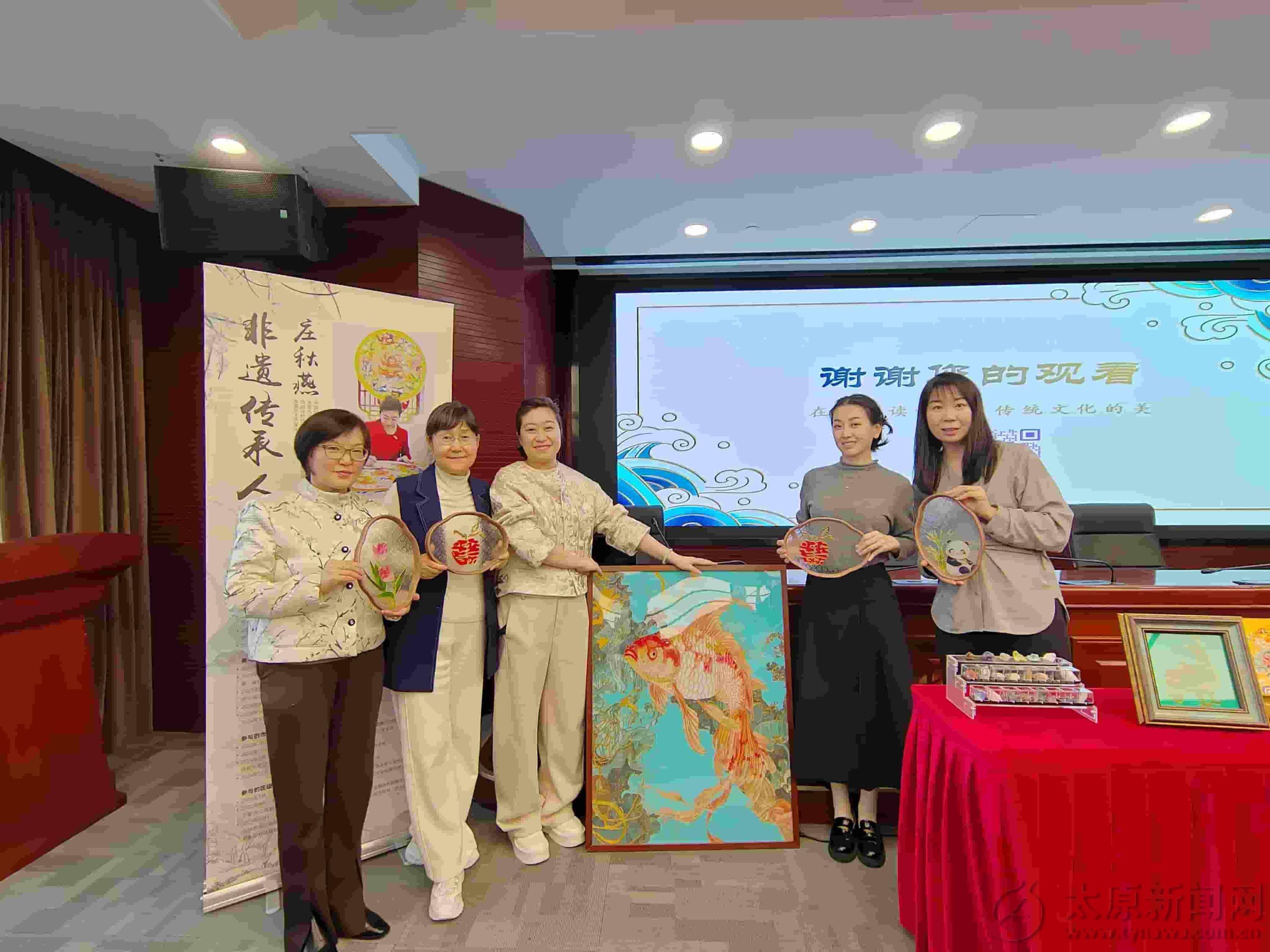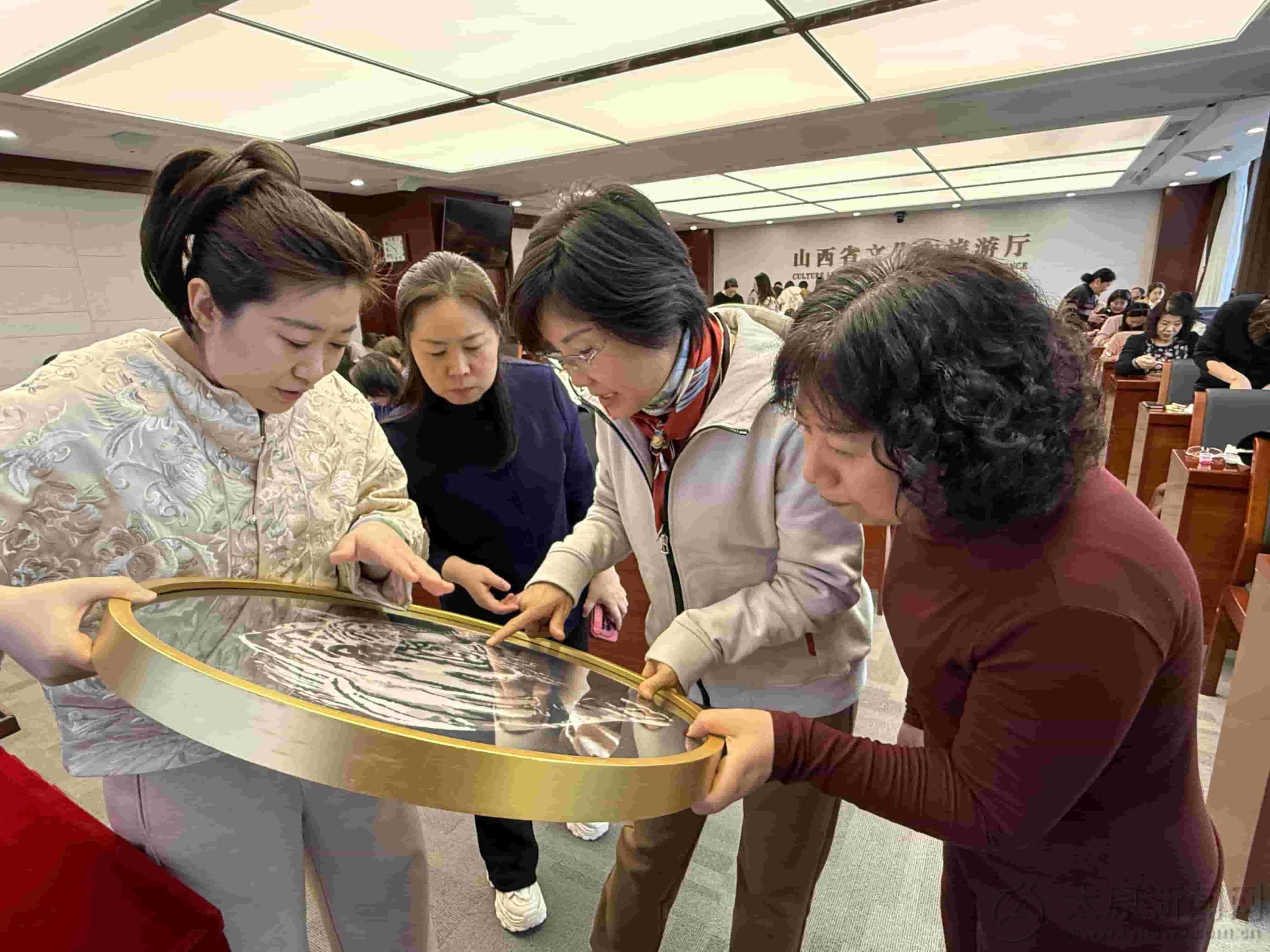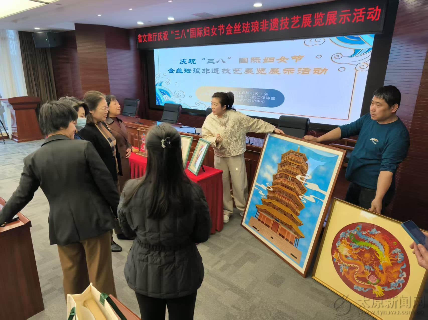 金丝珐琅画技艺,为太原市第八批市级非遗代表性项目,技艺融合了传统珐琅工艺与现代艺术审美,是非物质文化遗产活态传承的优秀实践。活动现场,太原市工艺美术大师庄秋燕分享了金丝珐琅画的历史渊源及发展脉络,展示了以山西古建、历史等为主题的优秀作品。