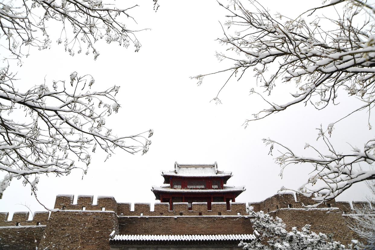这是3月15日在河北省张家口市怀来县鸡鸣驿古城拍摄的雪景。新华社发(孙慧军 摄)
