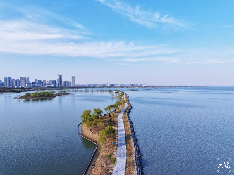 大皖新闻讯淡青色的天空与浮着细密波纹的湖水相接,一条蜿蜒的长堤将水波轻轻揽在臂弯中,堤上杨柳低垂正泛着新绿,在湖畔的春风中忽而轻扬,这是巢湖北岸的湖光春色。