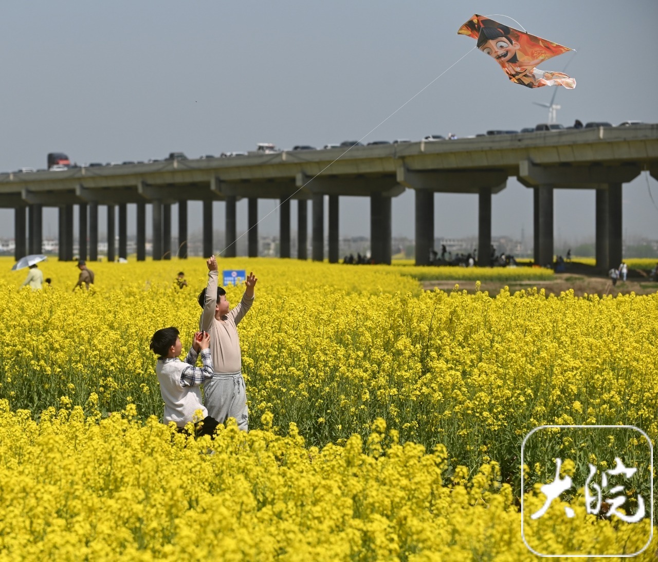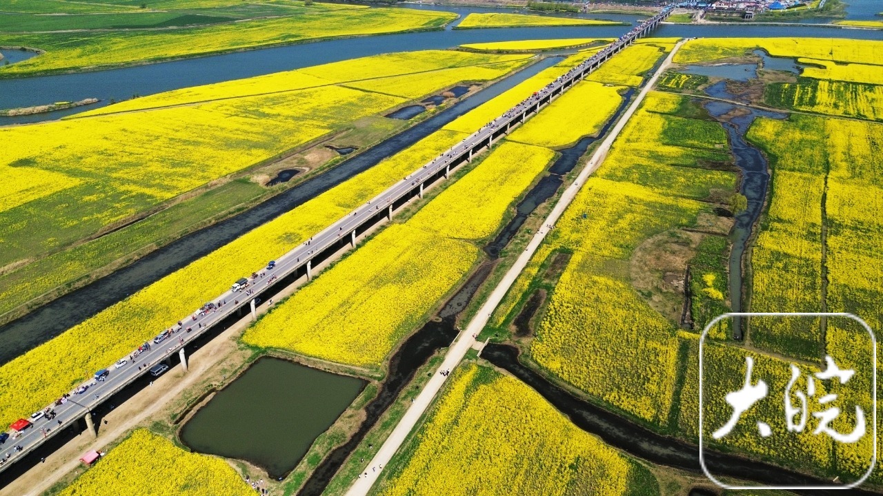 连日来,地处淮河蒙洼蓄洪区内的阜阳市阜南县王家坝国家湿地公园5000多亩油菜进入盛花期,仿佛给大地铺上金色地毯,吸引着成千上万名游客来此踏青赏春。
