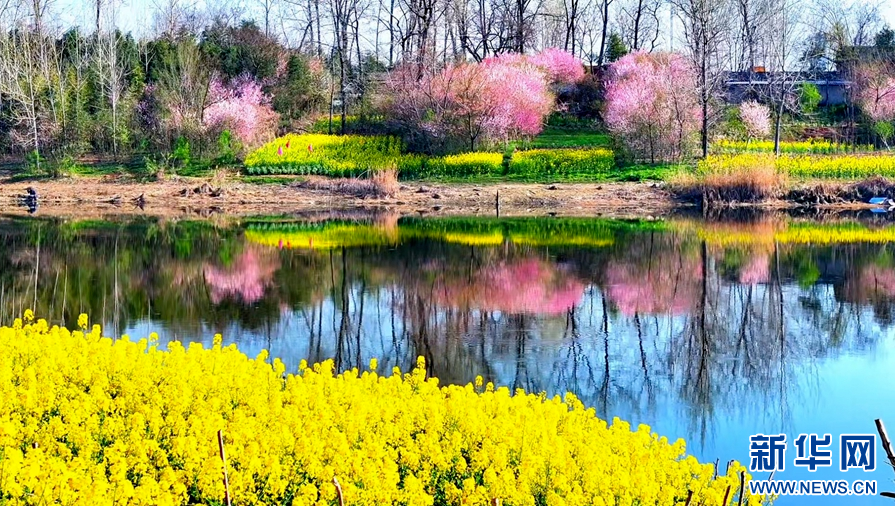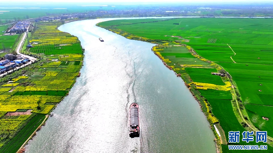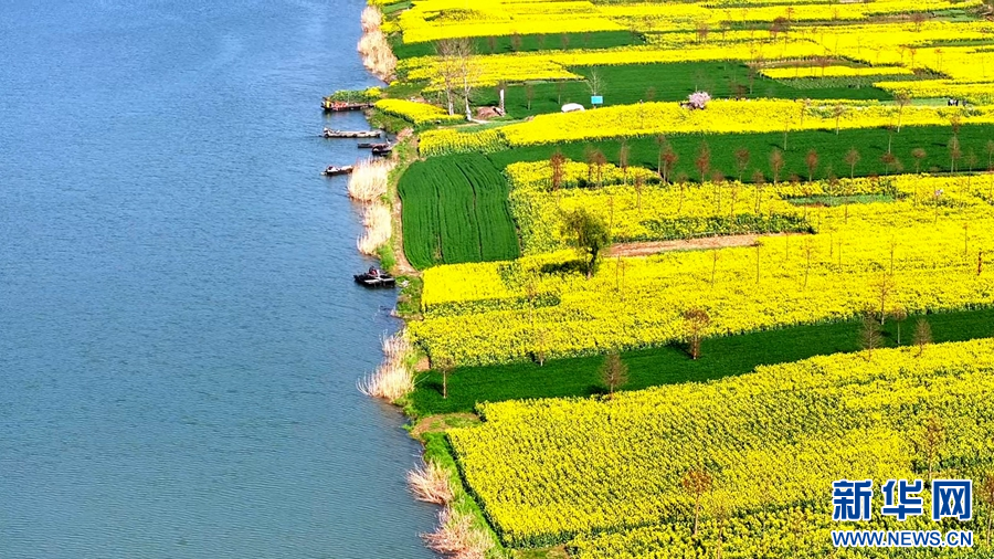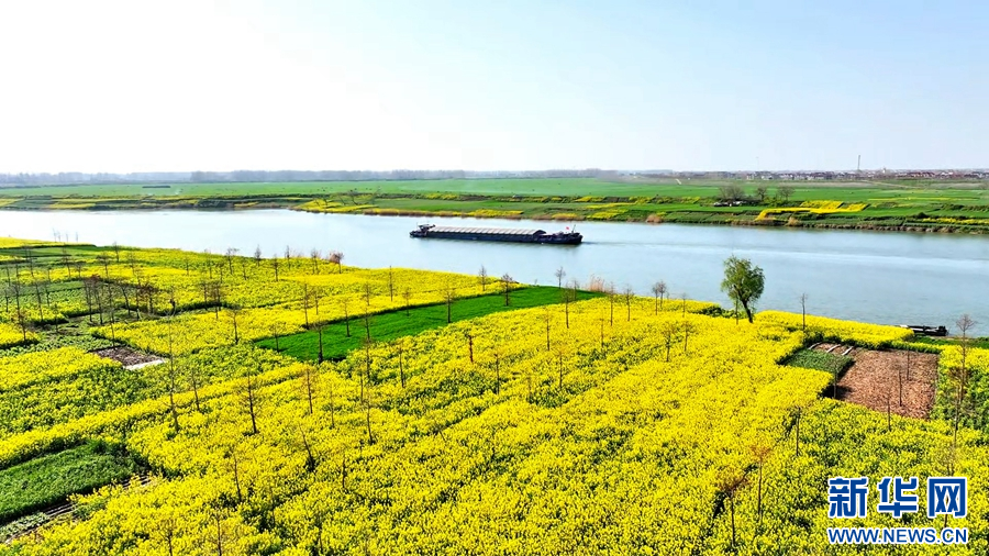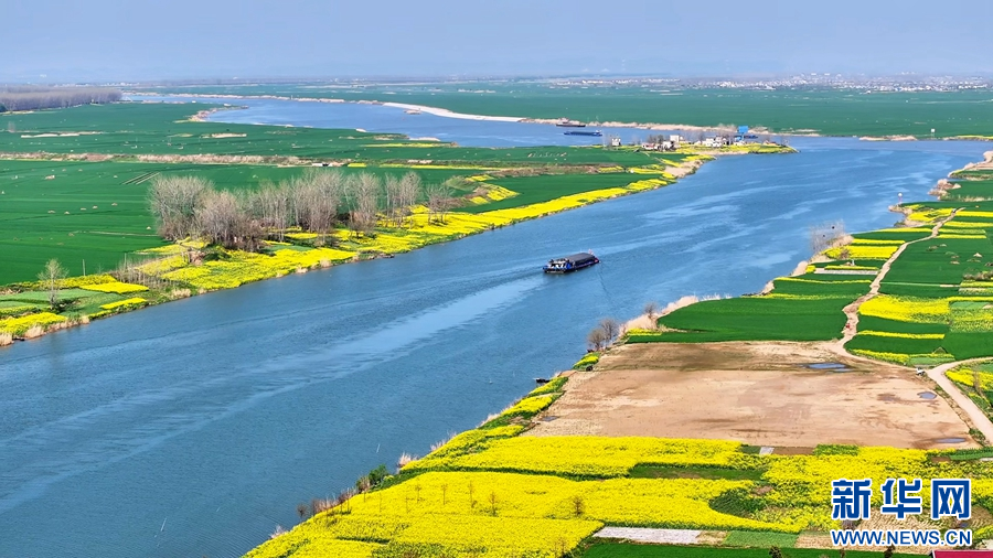 在皖北水乡安徽颍上,春天是一场盛大而热烈的交响曲。河畔,大片大片的油菜花肆意绽放,铺就了一片金色的海洋。蜿蜒的河湾、碧绿的河水、金黄的油菜花与远处的村庄相互映衬,共同构成了一幅流动的“油画”。