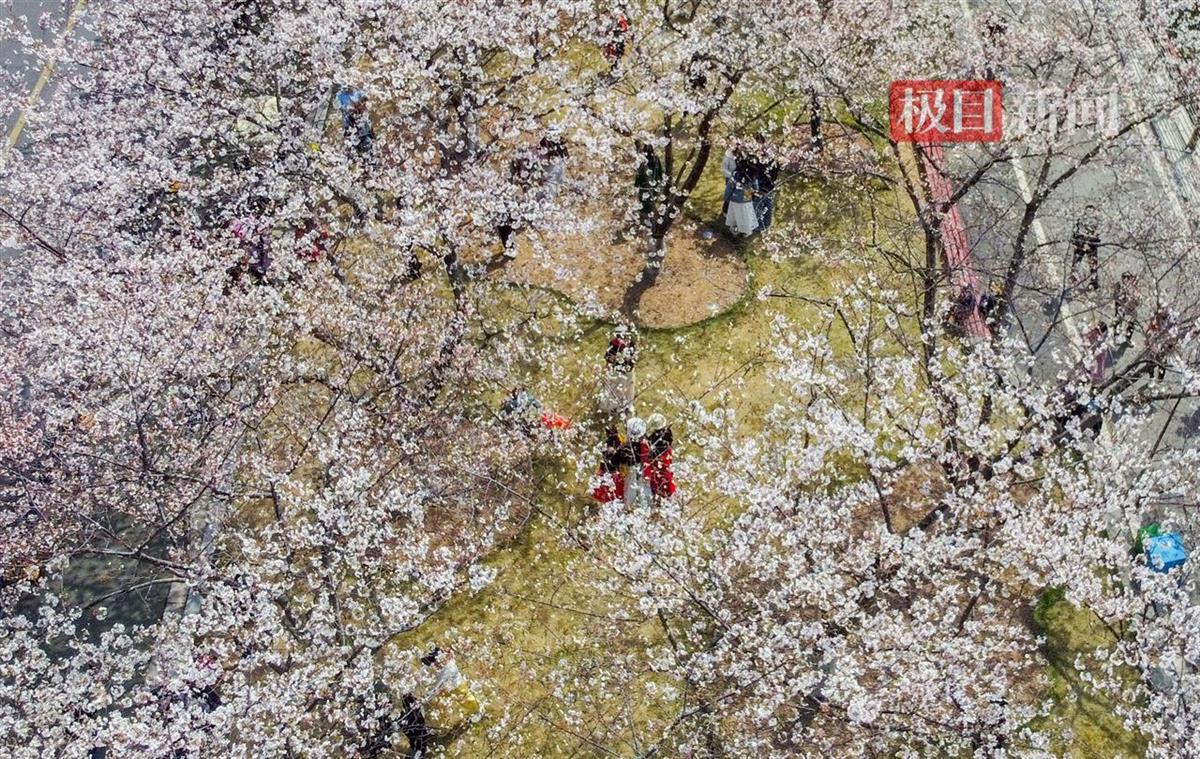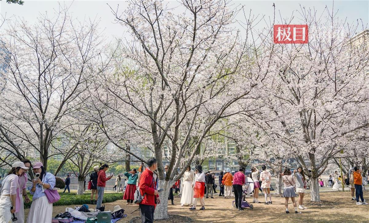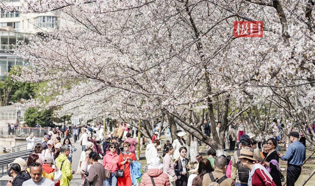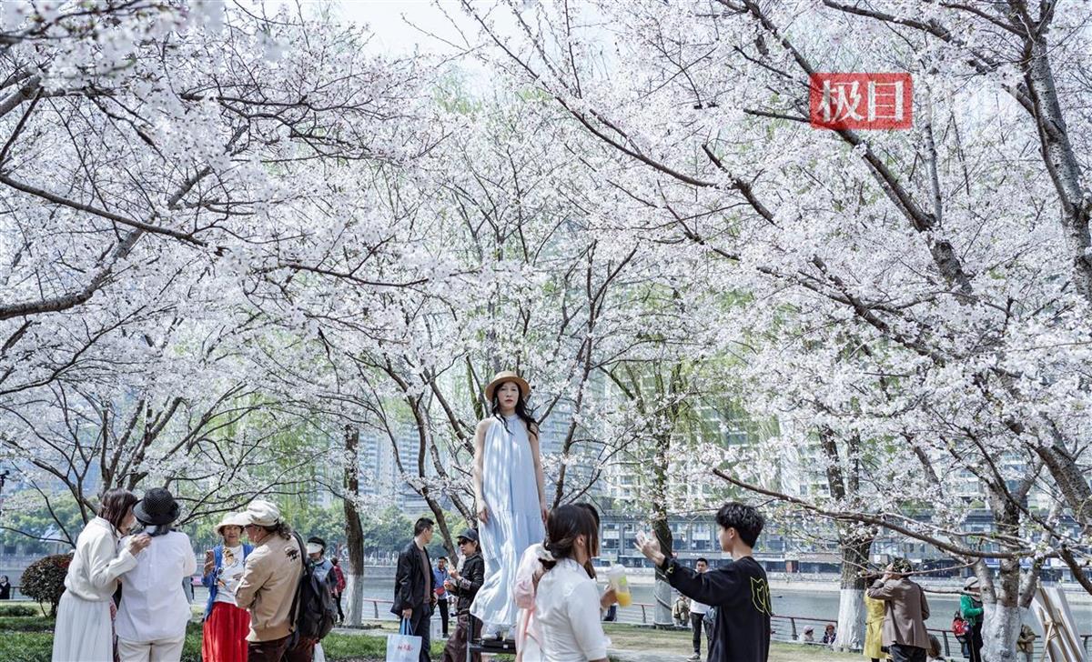 3月24日,汉口西北湖公园樱花大道樱花盛放,如云霞般绚烂夺目。粉白的花带、清澈的湖泊和周边摩天大楼相映成趣,舒展着春日美景。