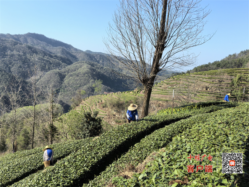 3月24日,武当山八仙观茶园正式开园,3000亩生态茶园迎来明前茶采摘“黄金期”,当地组织采茶工抢抓农时,纷纷进入茶园采收今年第一批新茶。