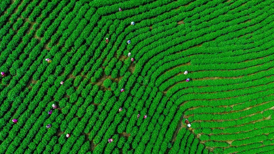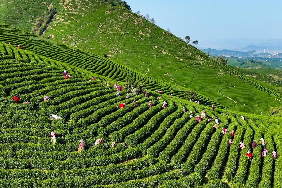 走进万亩茶园,漫山遍野的茶树抽出新芽,空气中处处弥漫着茶香,采茶工人们“点缀”在连绵的茶山中,腰挎竹篓,指尖翻飞,娴熟地按照一芽一叶的标准采摘今春第一捧嫩芽。据了解,今春天气晴好,阳光充足,雨量充沛,为白叶1号茶树营养物质积累和茶芽萌发提供了利好条件,预计茶叶品质也会更好,目前,全县30%的茶园进入采摘期,随着气温稳定上升,24.32万亩茶园即将全面开采。