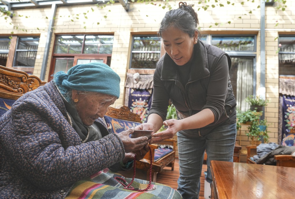 在西藏山南市桑耶镇一栋整洁的藏式民居外,年过90的玉珍老人坐在石阶上沐浴着午后的阳光。街道上车来车往,孩子们嬉戏打闹。这个场景,对历经世纪风雨的玉珍老人而言,曾是遥不可及的奢望。