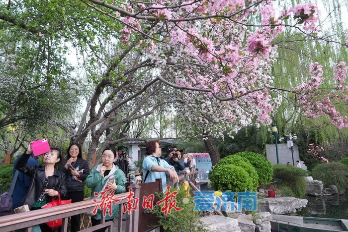 眼下,泉城又到了海棠花盛开时节,垂丝海棠、贴梗海棠,西府海棠在微风中摇曳生姿。重重叠叠的花瓣如天边云霞,与澄澈的潭水相互映衬。盛放的海棠不仅为城市增添了一抹亮丽色彩,更传递出春的温暖与活力,让每一位驻足观赏的人都不禁为这春日胜景怦然心动。
