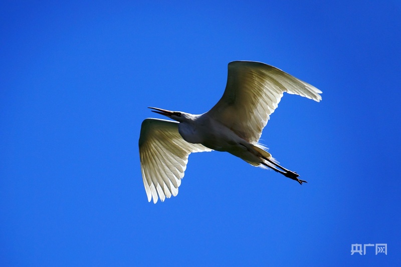 白鹭在蓝天下飞翔(央广网记者 张海东 摄)