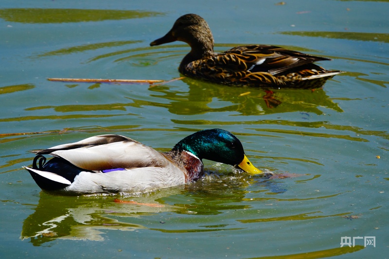 觅食的绿头鸭(央广网记者 张海东 摄)