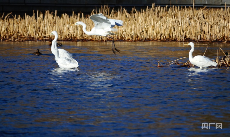 白鹭成为湿地公园的一道风景线(央广网记者 张海东 摄)