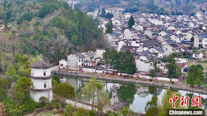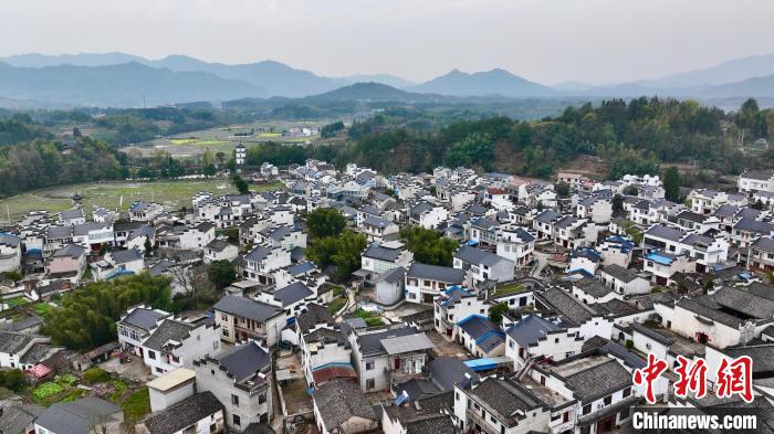图为3月30日航拍村中保存完好的古民居。(无人机照片) 中新社记者韩苏原摄