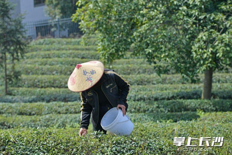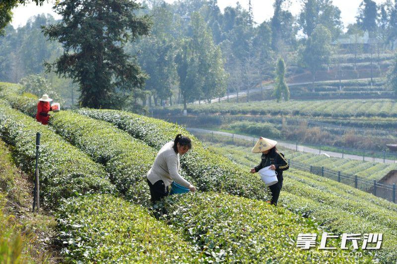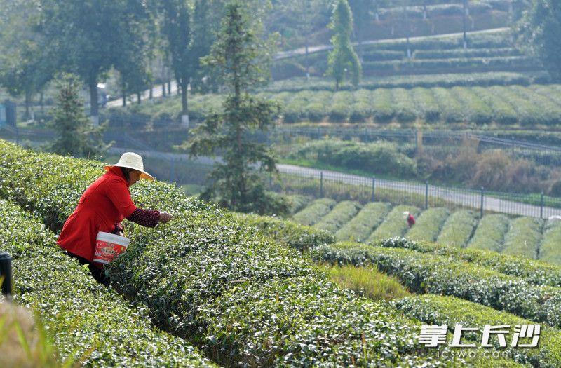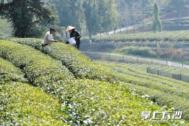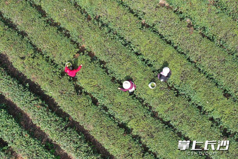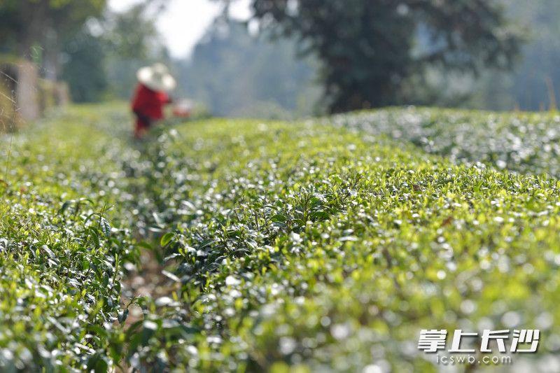 长沙晚报掌上长沙4月1日讯(全媒体记者 王志伟 通讯员 吴杰)今日上午,长沙县金井镇金井茶业三棵树茶园内,漫山遍野的茶树吐露新绿,茶香四溢,村民们穿梭于万亩碧绿茶垄间采摘“明前茶”。