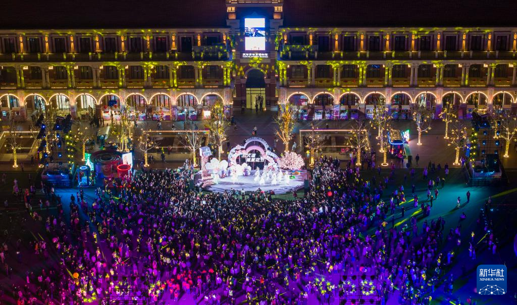 这是4月3日拍摄的第三届五大道海棠花节启幕现场(无人机照片)。新华社记者 赵子硕 摄