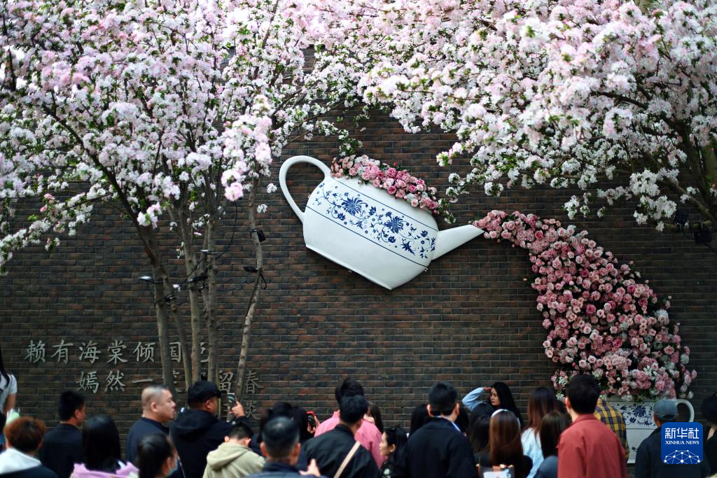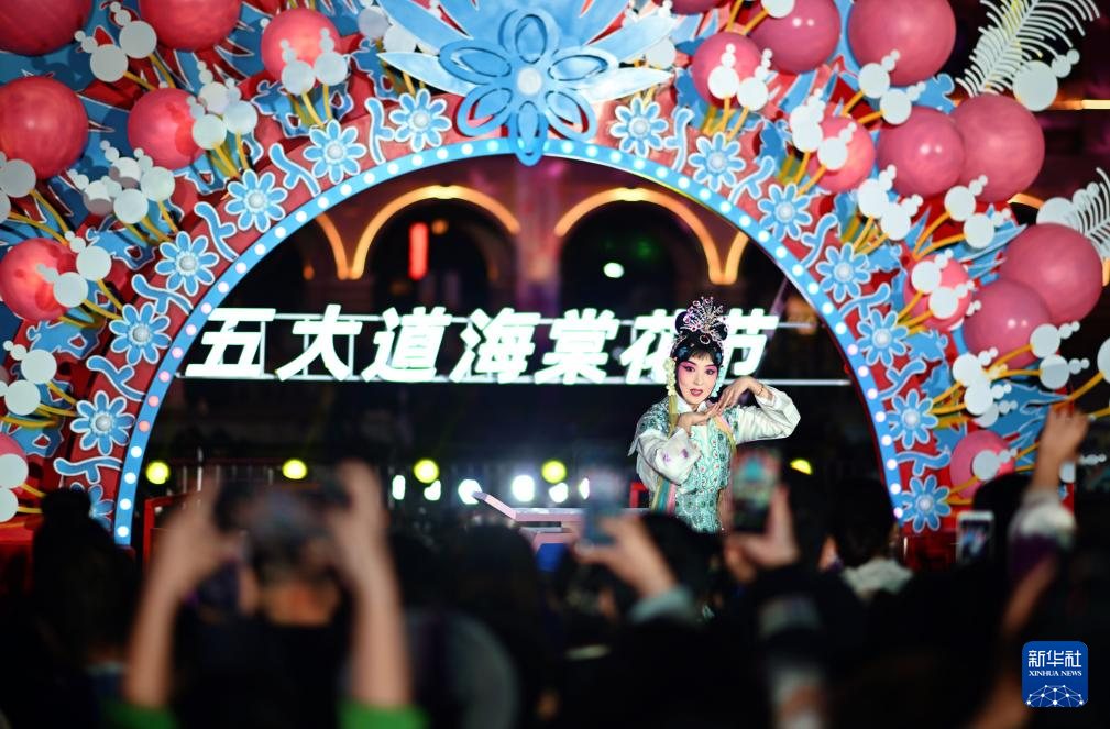 4月3日,人们在第三届五大道海棠花节启幕现场观看戏曲表演。新华社记者 赵子硕 摄