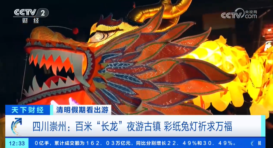 四川崇州:三百米“长龙”夜游古镇彩纸兔灯祈求万福