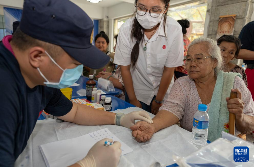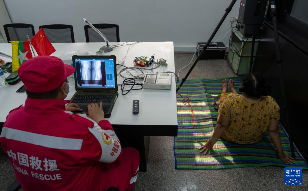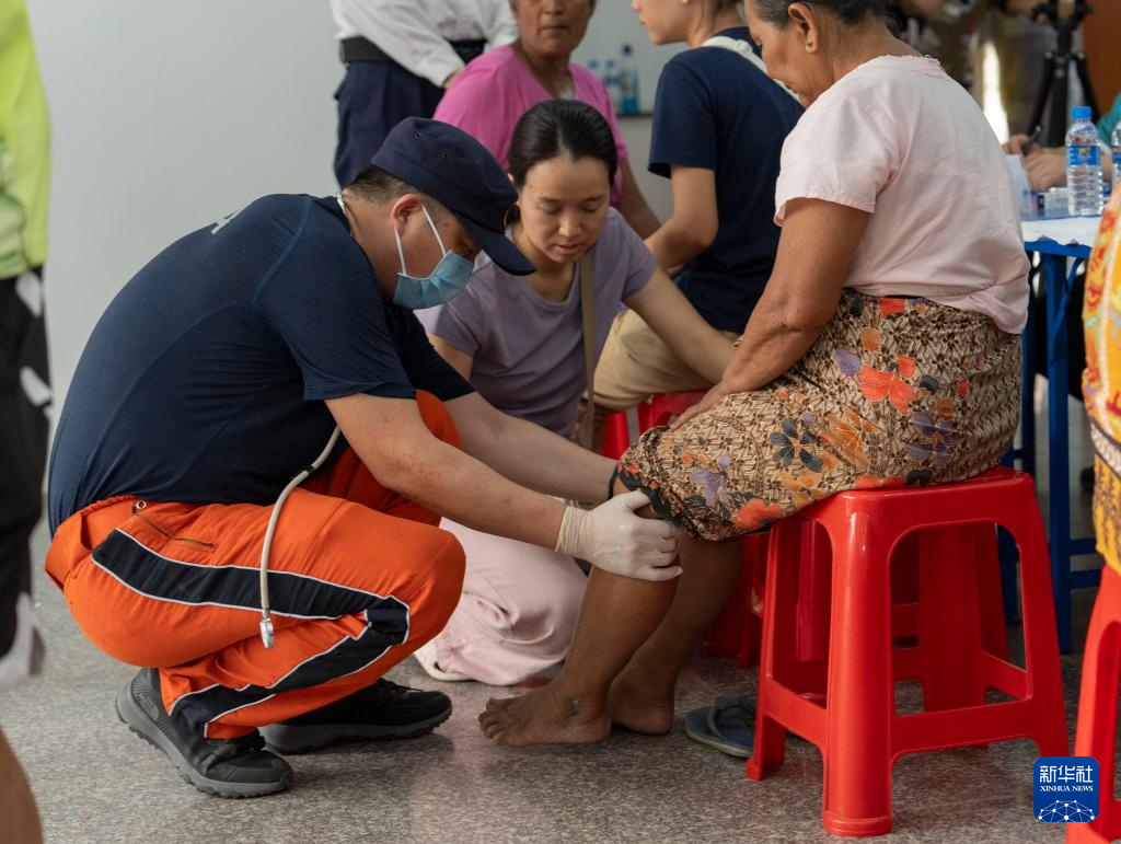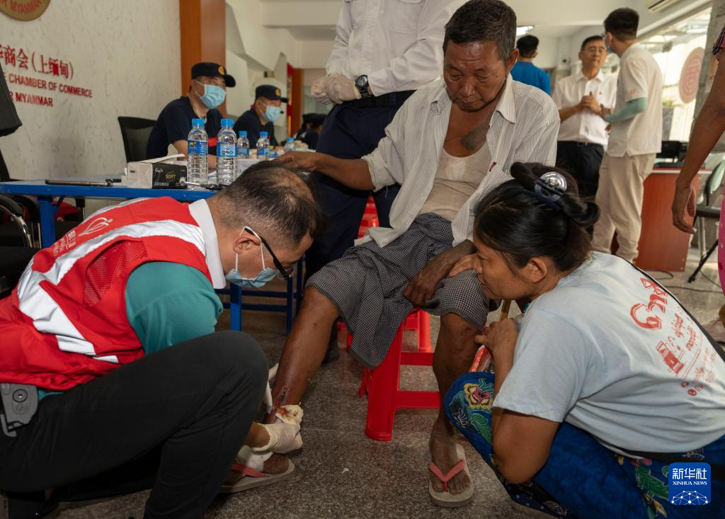 4月5日,多支中国救援力量在缅甸曼德勒开展医疗巡诊,为当地灾区民众提供“零距离”诊疗服务。