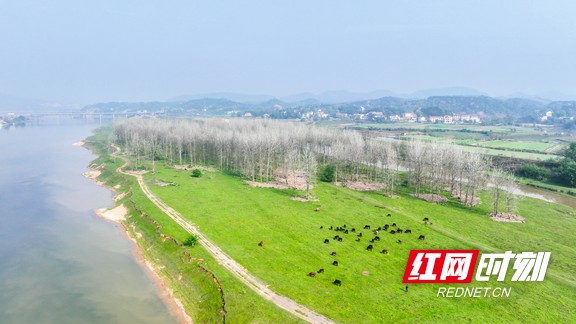 近日,湖南省衡东县洣水国家湿地公园迎来最美春色:无人机视角下,这片占地2000多公顷的天然草甸犹如绿色绒毯铺展大地,与挺拔的树林、蜿蜒的洣水河、苍翠的远山构成诗意画卷,散落其间的牛羊更添生态野趣。