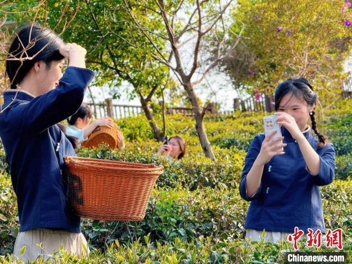 活动当日,紫金县的其他茶园也迎来头春茶的采摘。在紫城镇黄花村的黄花庄园,层层叠叠的茶垄间,采茶女与游客的身影交织。
