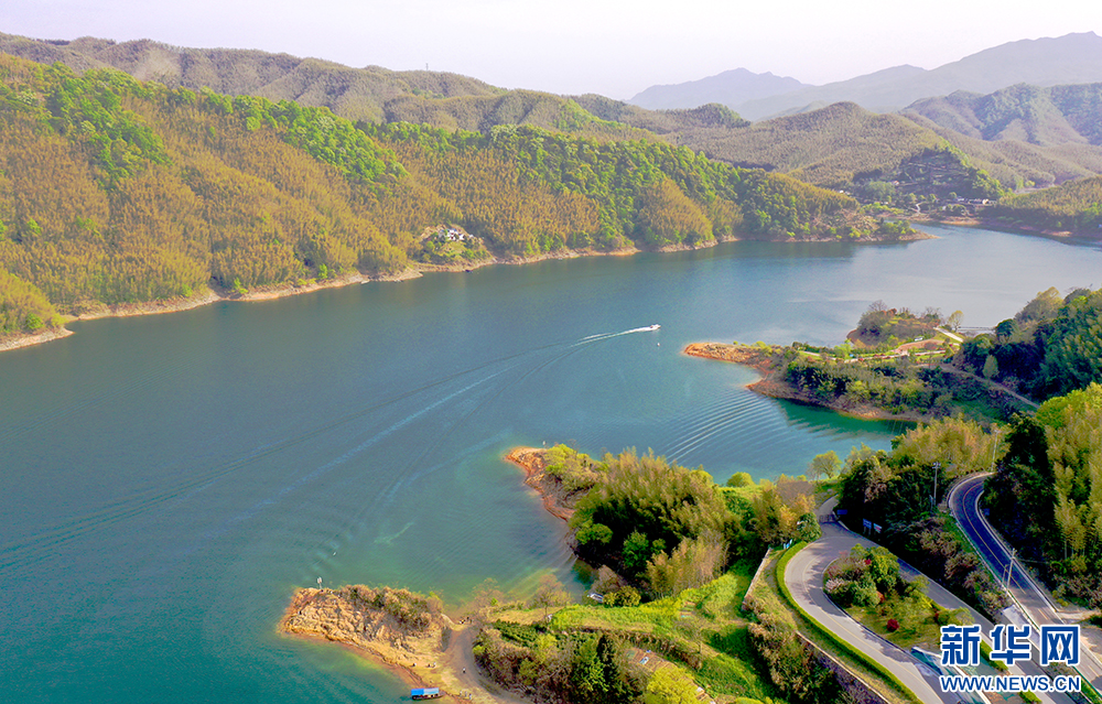 春日,地处大别山区的安徽省六安市霍山县佛子岭水库景区风光旖旎,吸引众多游客前往游玩。新华网发(王林洪 摄)