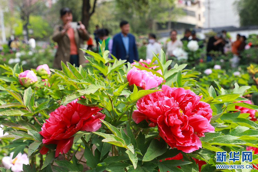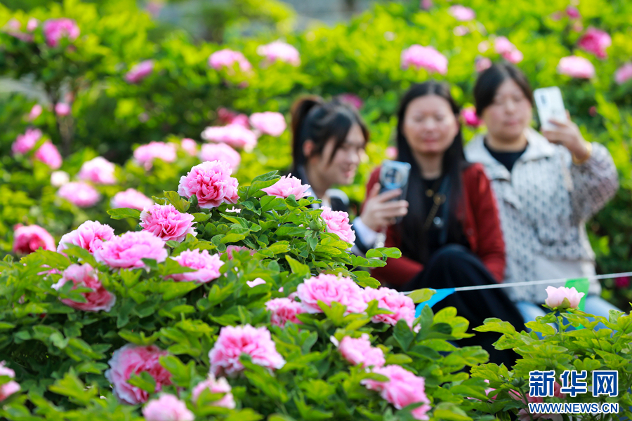 近日,安徽省淮北市相山公园牡丹园内的牡丹花次第绽放,姹紫嫣红的花朵将园区装扮得春意盎然,吸引众多游客前来参观游玩。新华网发(万善朝 摄)