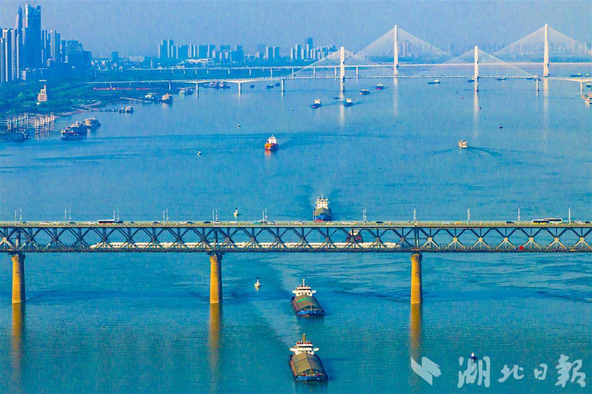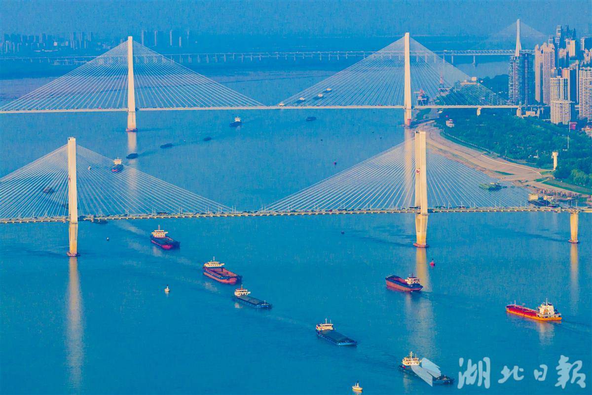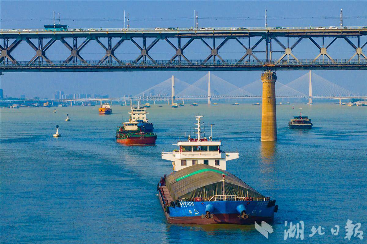 湖北省是长江干流流经最长的省份,长江湖北段全长约1061千米。在一艘艘货轮往来交织的繁忙图景里,长江黄金水道日益成为畅通国内国际双循环的大动脉。(湖北日报全媒记者 任勇 摄)