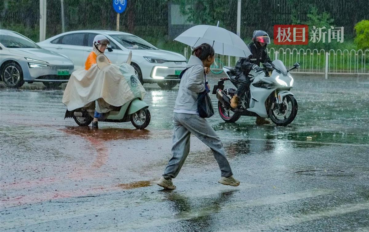 4月11日午后,天空骤然变脸,“狂风暴雨”席卷了武汉市的各个角落。在暴雨雷电中,天色变得昏暗,路上行驶的车辆亮起了车灯、减慢了行车速度。强对流天气,给户外的市民们带来了意想不到的挑战。在光谷民族大道、珞喻路上行人明显减少,冒雨前行的市民加快了步伐,辛勤的外卖小哥还在大雨中继续忙碌着。