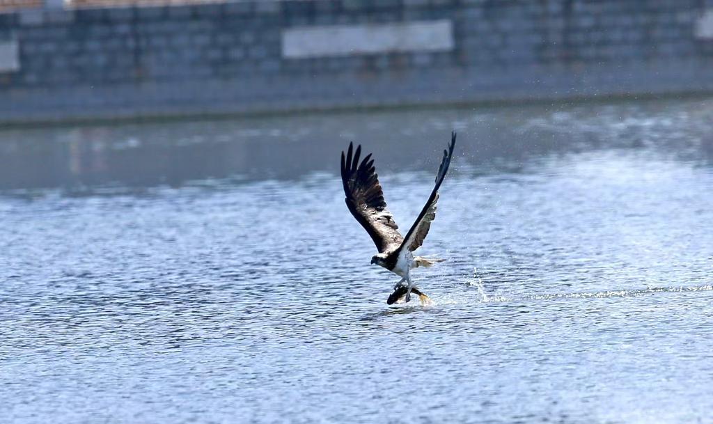 图为国家二级重点保护野生动物鹗(鱼鹰)捕鱼。新华社发