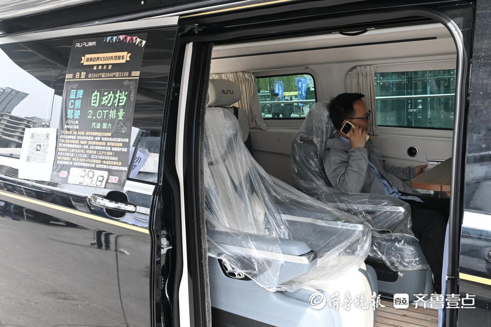4月11日,2025齐鲁春季车展暨第51届齐鲁汽车展览交易会在山东国际会展中心迎来购车人潮。展会在场外开辟了一处房车集中展区,几款房车配备了以高档舒适为主的座椅,为消费者出行带来愉快体验。