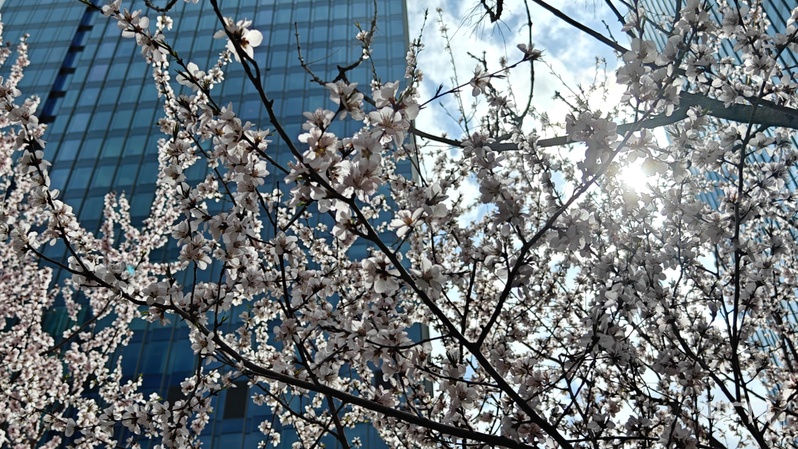 央广网乌鲁木齐4月12日消息(记者郭璁悦)春色蔓延香满城,整座城市都在春天散发着勃勃生机。在新疆乌鲁木齐市,气温回暖春光至,街道旁、小区中、公园里的花树绽放,吸引着市民孩童从室内走到室外,共同感受当下的美好春日。