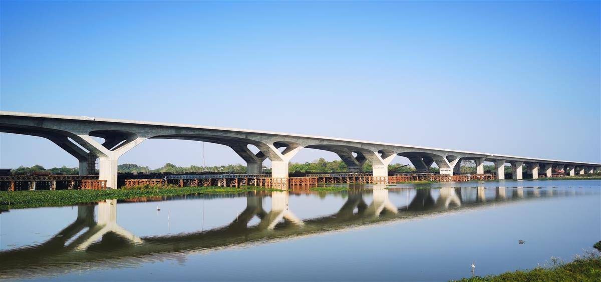 吴楚大道东延线项目位于鄂州湖北国际物流核心枢纽区内,西接燕花路,东至保税区,路线全长3.972km。其中花马湖大桥全长2.404km,90%的结构位于湖中,主桥为V型构造,造型美观,是国内流行的景观桥,采用观赏性桥墩设计。