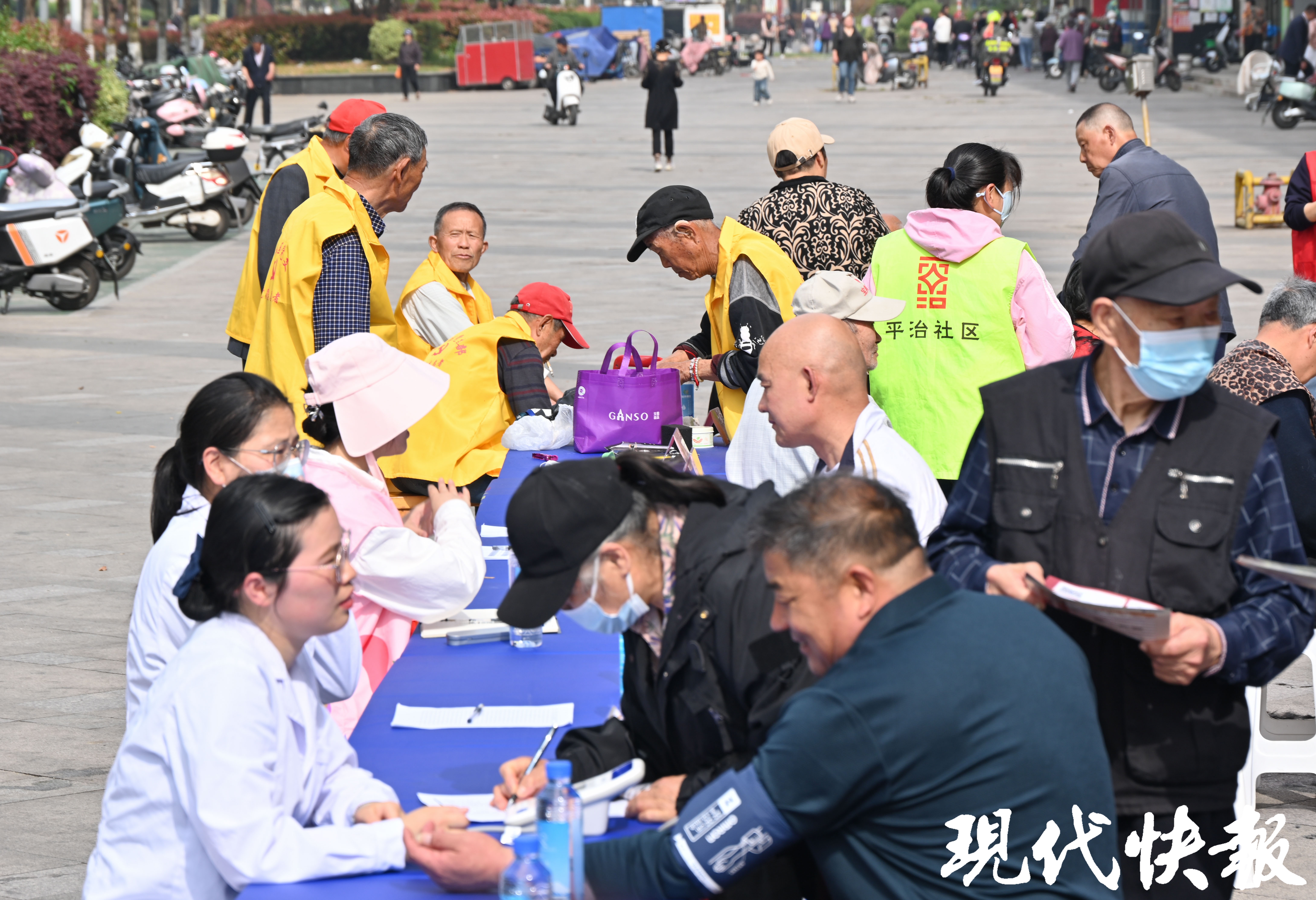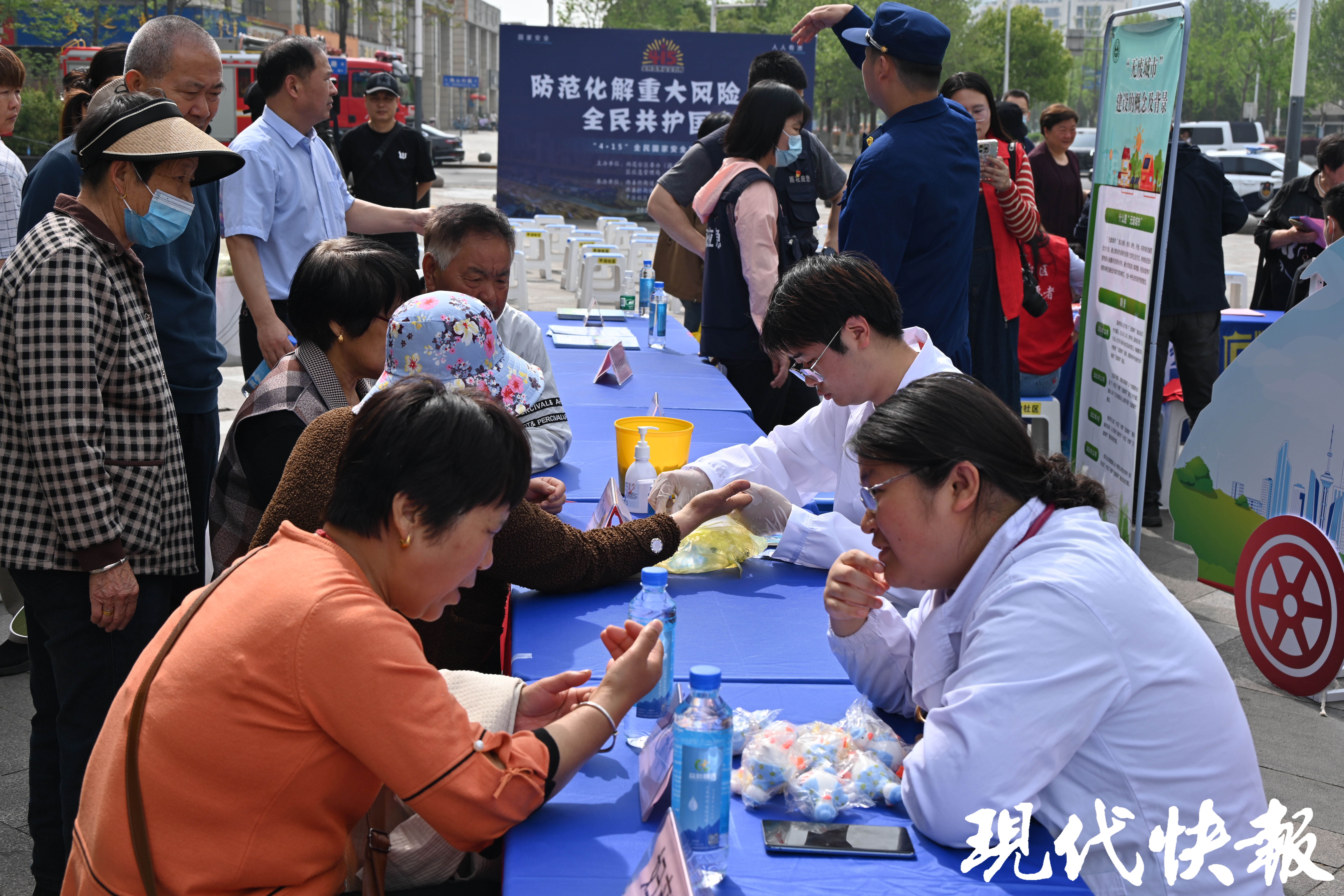 雨花台区应急管理局工作人员发放家庭应急知识折页、应急避险宣传手册、自然灾害民生保险宣传单页,宣传防灾减灾知识和自然灾害民生保险政策。雨花台生态环境局以“环保大篷车+”为载体,现场进行“无废城市”等生态安全、核与辐射安全知识宣传。梅山医院岱山院区带来了免费测血压、测血糖和8个科室爱心义诊服务,西善桥街道平治社区提供了免费磨刀和理发服务。