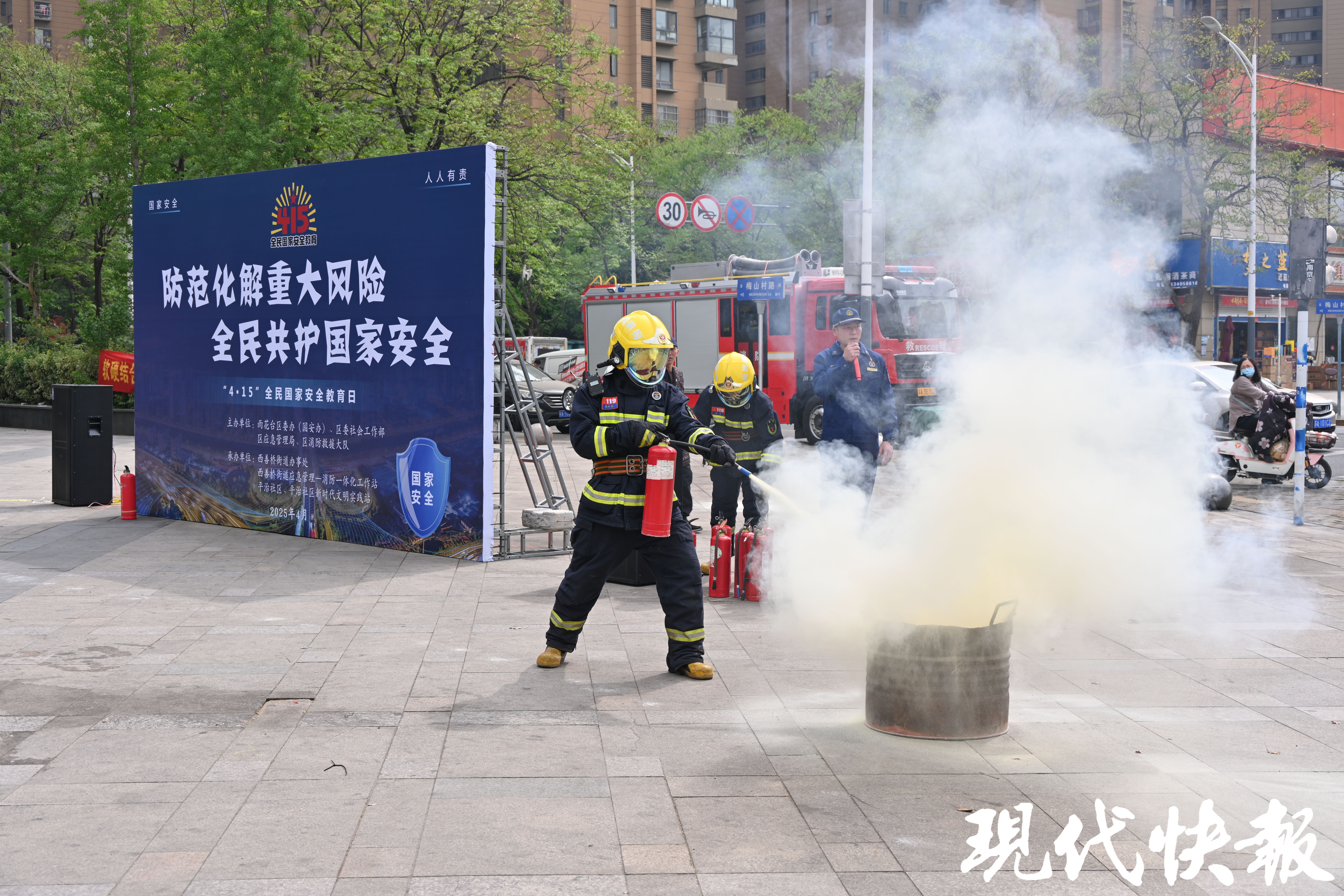 雨花台区消防救援大队展示了消防救援车辆、快速破拆装备、抢险器材等先进消防装备,消防宣传员,带领南京中华中等专业学校青年消防志愿服务队开展消防知识宣传,讲解高层住宅小区消防安全管理注意事项,开展实战演练、手把手教学,引导社区居民做到“四清三关”(清厨房、清楼道、清阳台、清天井,关燃气、关电源、关门窗),提高安全意识,牢记“一提、二拔、三握、四压”灭火口诀,正确使用消防器材。