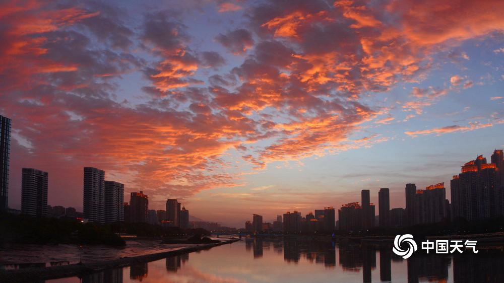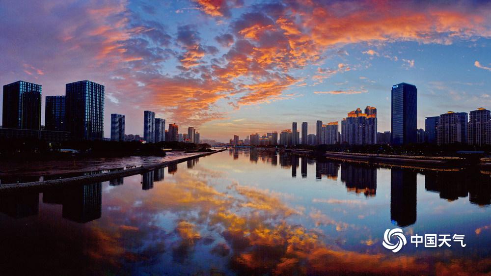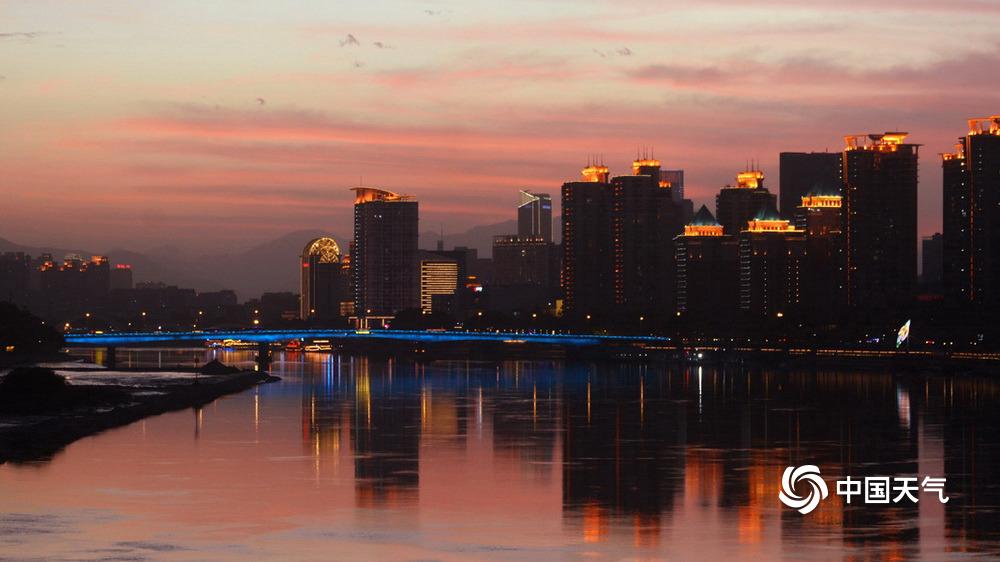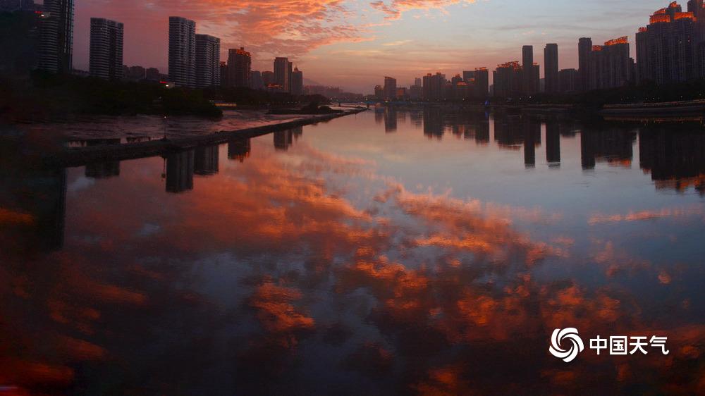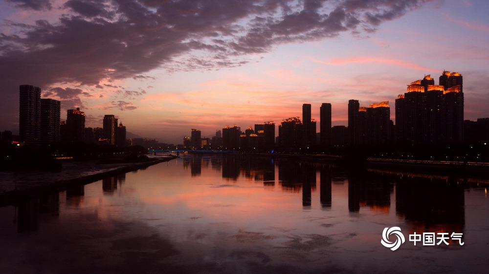 橘粉与靛蓝的渐变 福州闽江晚霞倒影美轮美奂
