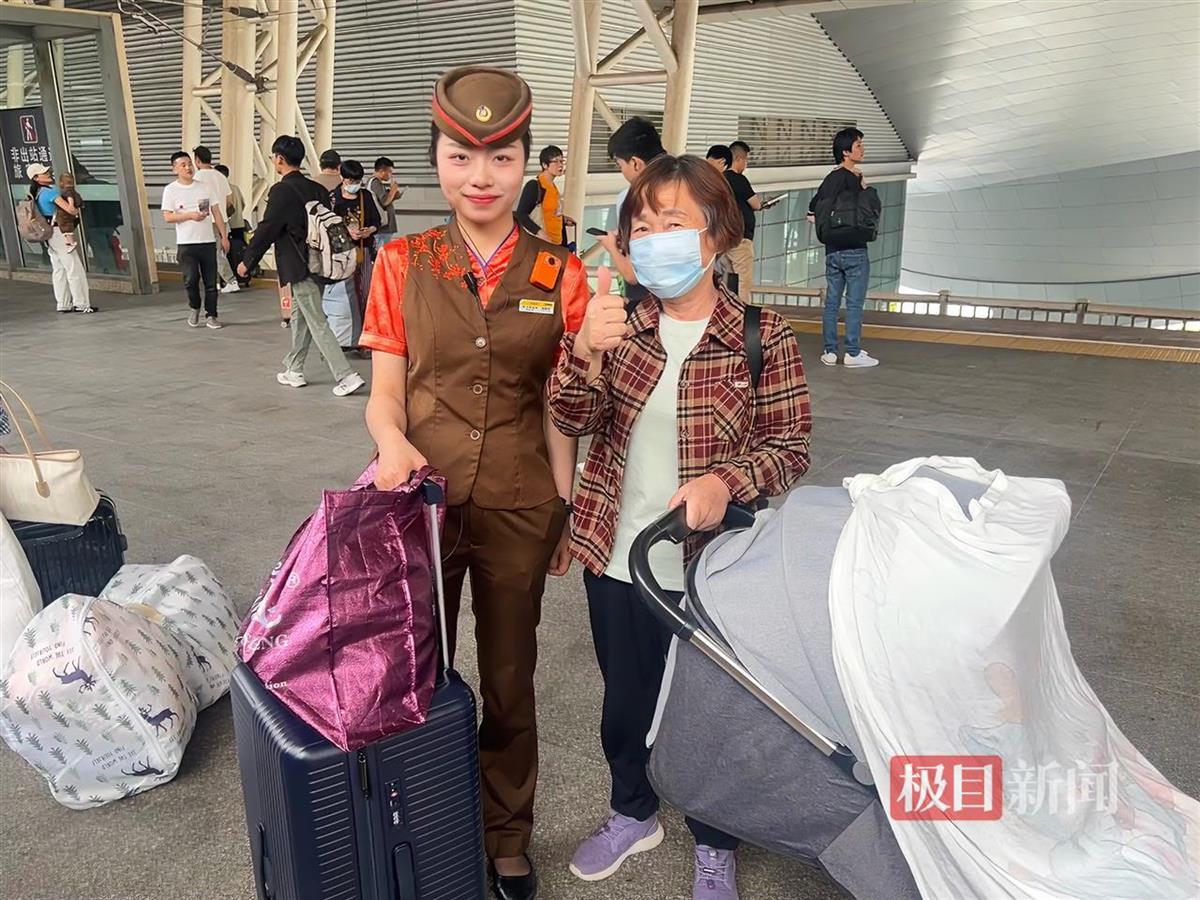旅途中,章紫琴化身“临时家人”:帮奶奶逗哄哭闹的宝宝、递送纸尿裤、主动看护婴儿车,甚至护送祖孙俩至车门。奶奶十分感激,拍下不少章紫琴为其忙碌的照片,发给儿媳分享这份温暖。下车时,奶奶紧握章紫琴的手连声道谢:“多亏有你,不然这一路我真不知道咋办,太谢谢你了!”