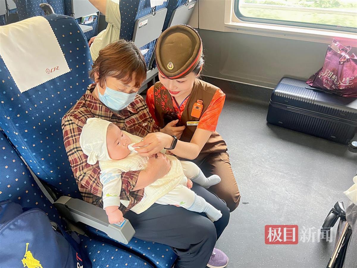 4月11日,武汉开往深圳北的G1001次列车车厢里上演暖心一幕。列车员章紫琴巡视车厢时,发现一位奶奶独自带着熟睡的婴儿滞留在车厢连接处。经询问得知,老人独自带着小孙子前往虎门站,去与在那里工作的儿子儿媳团聚。因座位靠内、婴儿车阻碍通行,老人无奈选择在狭窄空间照看孩子。了解情况后,章紫琴迅速查看了当日客流,发现空位较多,便立即协调,将老人座位调整至五车最后一排,并把座椅转至方便照看婴儿车的方向。