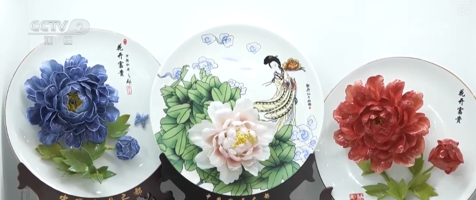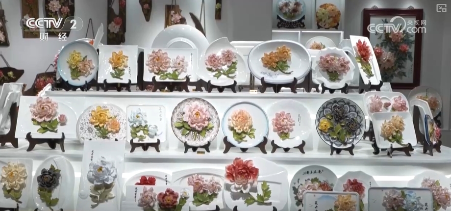 文创产品的热销,也带动了菏泽当地传统文化产业的发展。牡丹瓷以白瓷土为原料,手工加工成姿态万千的牡丹花瓣、叶片,再经过素烧、施釉、上彩等10余道工序制作而成,被誉为“永不凋谢的瓷上牡丹”。在曹州白瓷烧制技艺传承人刘慧丽的工作室,员工们正在加紧制作牡丹瓷的文创产品。