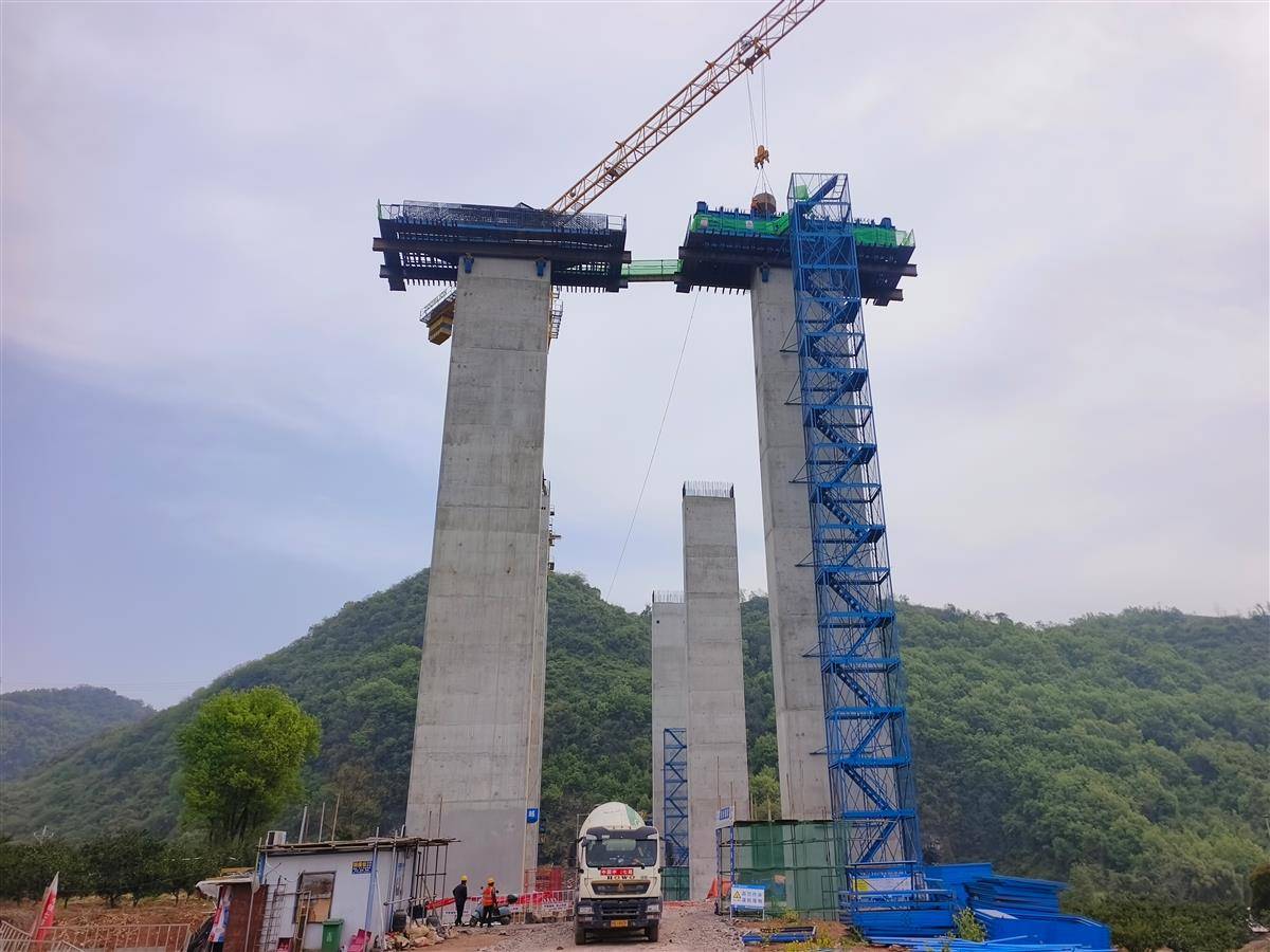 襄宜高速公路汉马岗大桥首个盖梁顺利浇筑完成