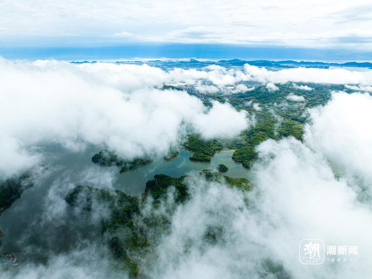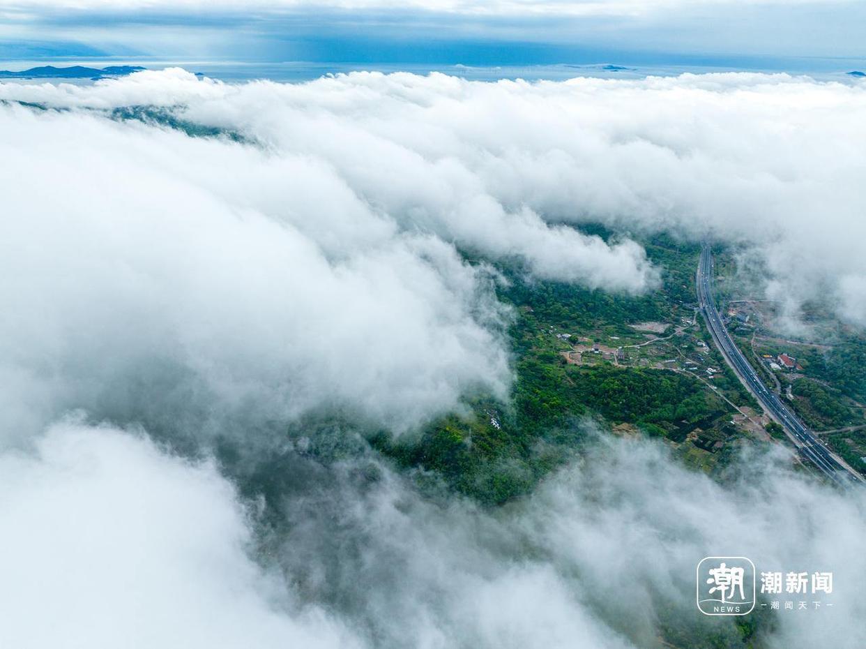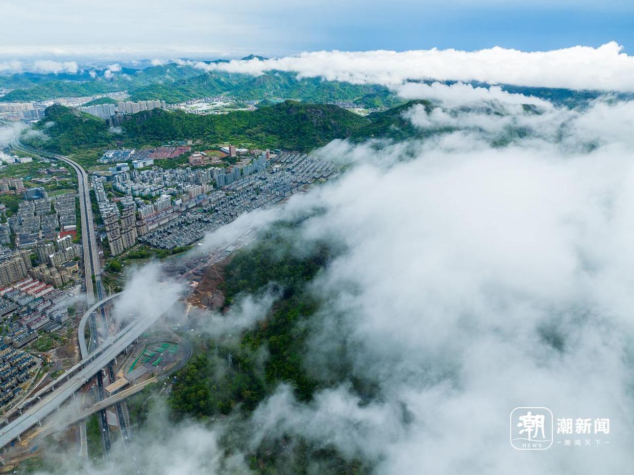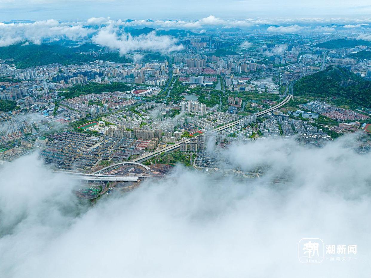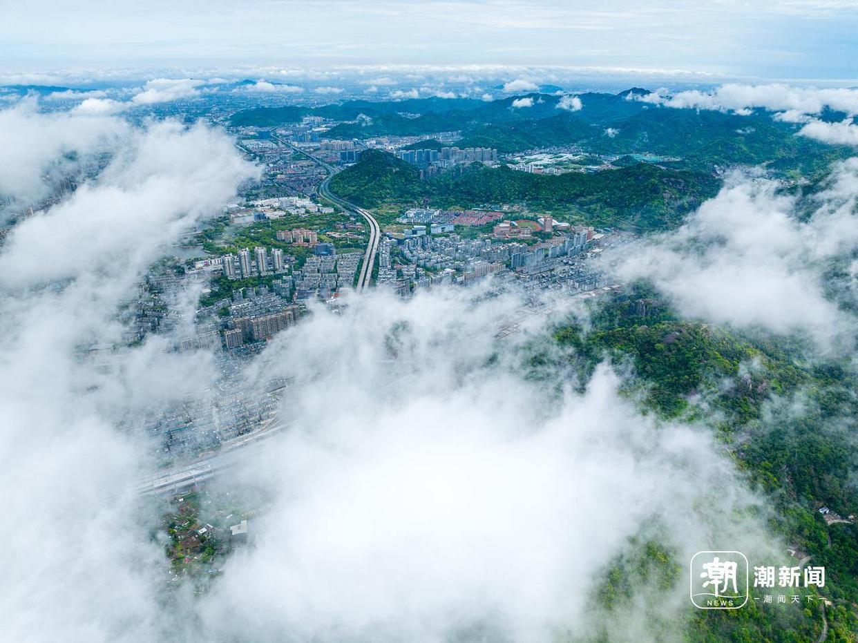 4月19日,温岭市在雨后出现云海景象,从高空俯瞰,连绵起伏的山峦间,浓厚的云海像汹涌的波涛般翻腾涌动,又似轻柔的薄纱缓缓飘动,勾勒出一幅幅美轮美奂的江南水墨画卷。