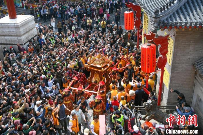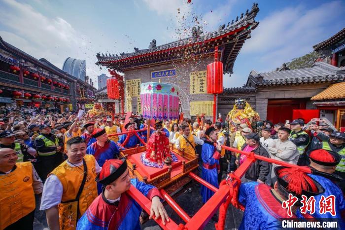 4月19日,天津天后宫,天后出巡散福吸引参观者。当日,第十二届天津妈祖文化旅游节启幕。记者 佟郁 摄