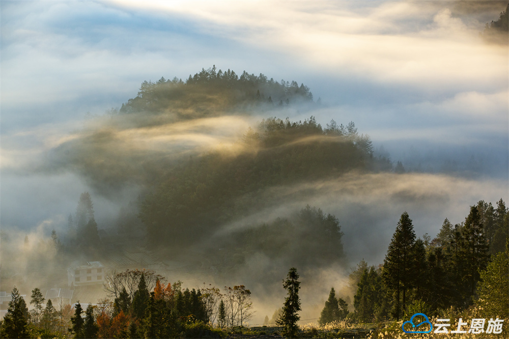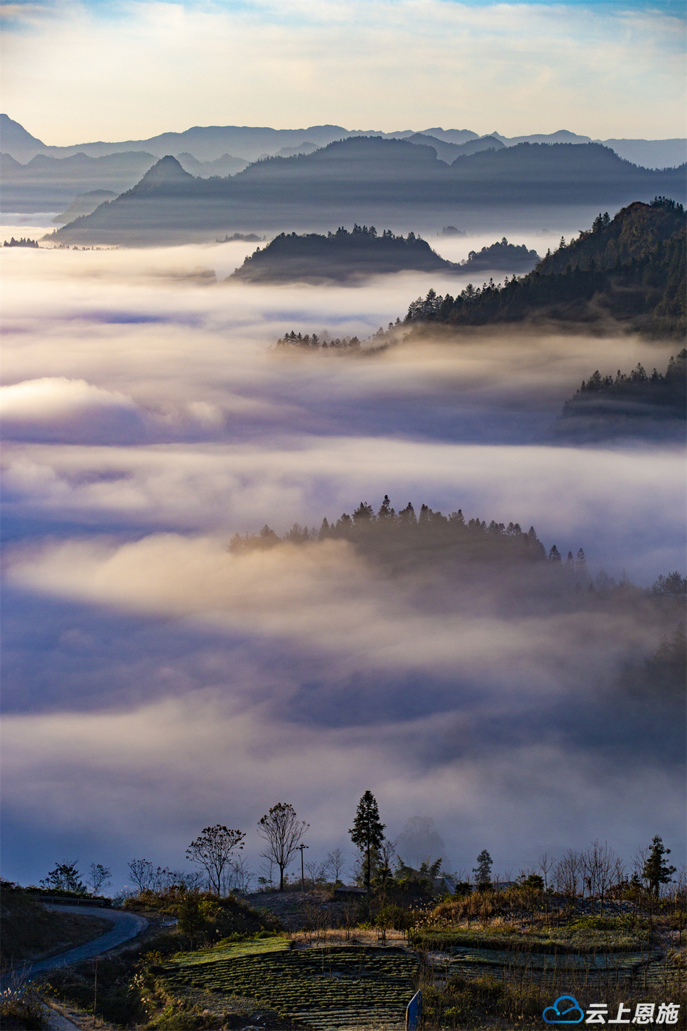 云上恩施报道(利川通联记者 杜苗 通讯员 陈小林)青岩村位于湖北省利川市毛坝镇西北方,群山环抱风景秀美。来到青岩村一边的山顶,不仅能俯瞰青岩云海的全貌,还可远眺大茅坡、马纵岭、星斗山等地的云海翻涌。