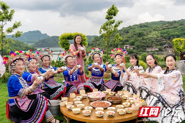 品茶环节将活动推向高潮,新制香茗搭配特色茯苓茶点与苗侗油茶,在茶香氤氲中,众人跟随苗侗姑娘共舞,沉浸式体验民族风情。此次活动以文旅融合为笔,以传统文化为墨,在谷雨时节绘就了一幅生动的文化图景,为靖州文旅发展注入新活力。