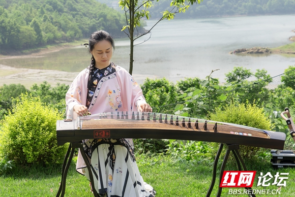 用茶叶吹奏采茶歌。(图源:田其珍)