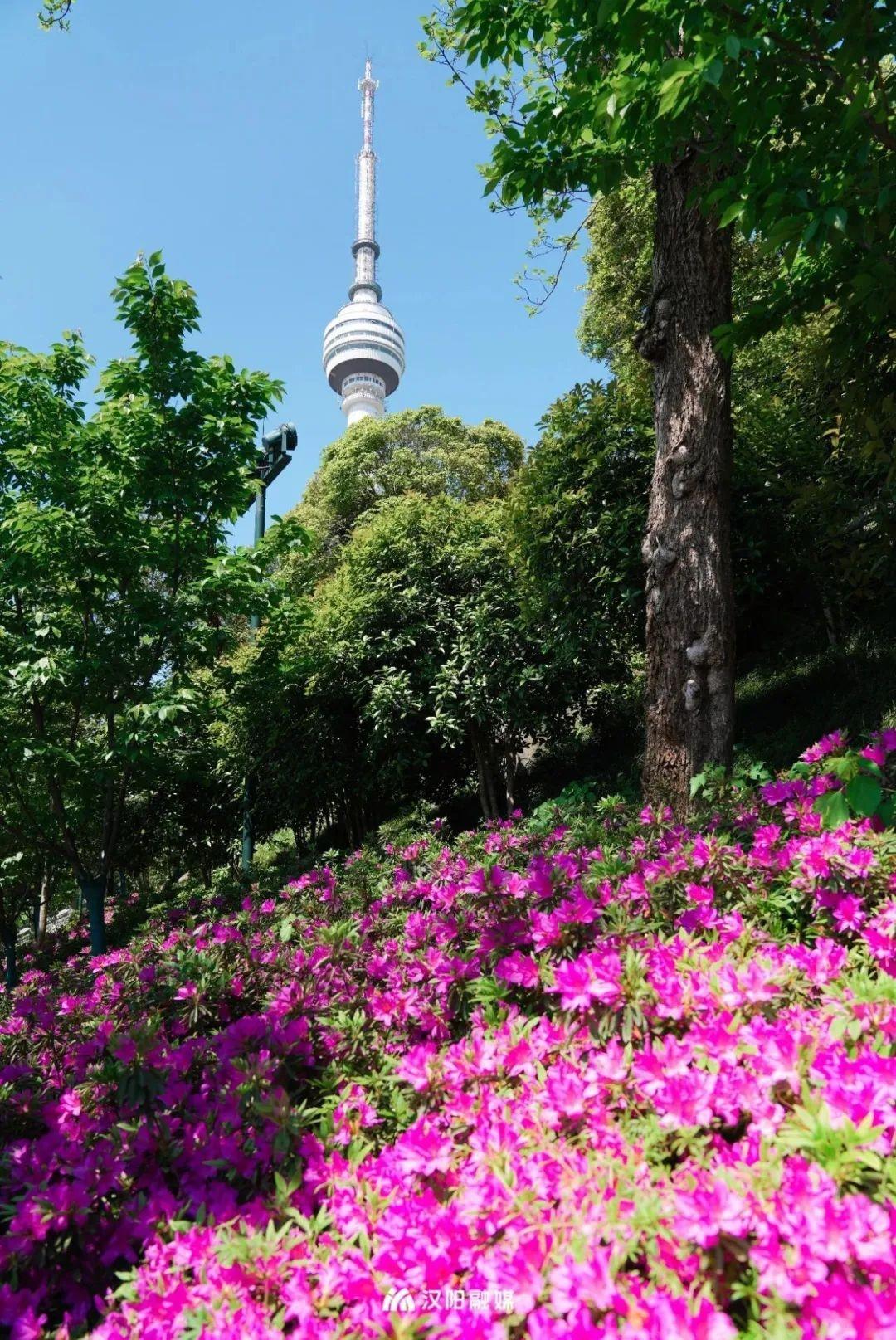 在汉阳赏杜鹃,龟山风景区是不二之选!龟山上46万株杜鹃,花开如海,红似火焰粉如霞,层层叠叠如天然油画。