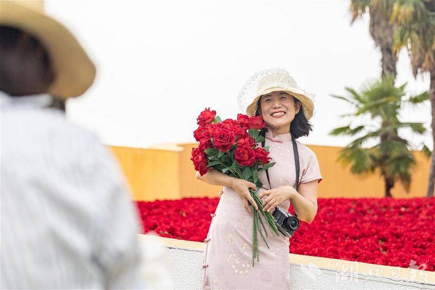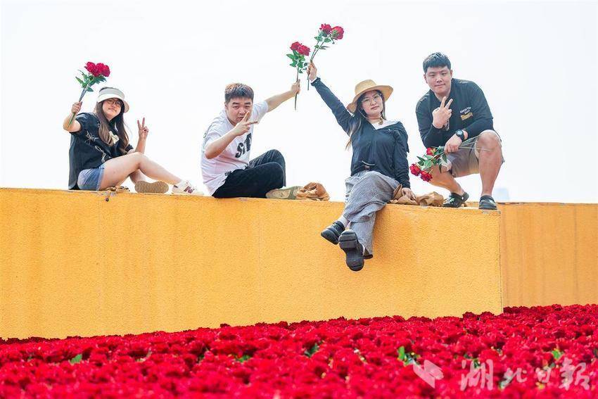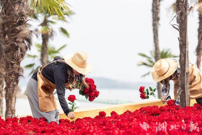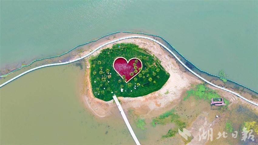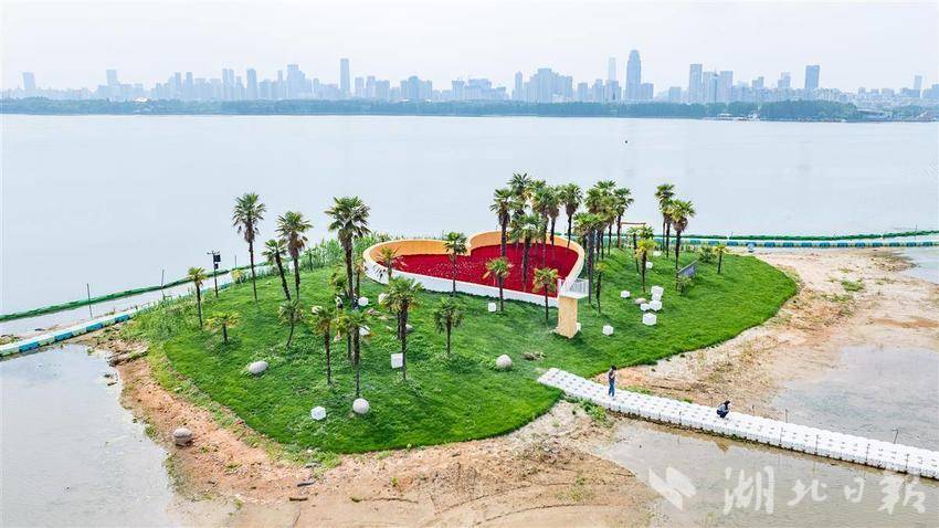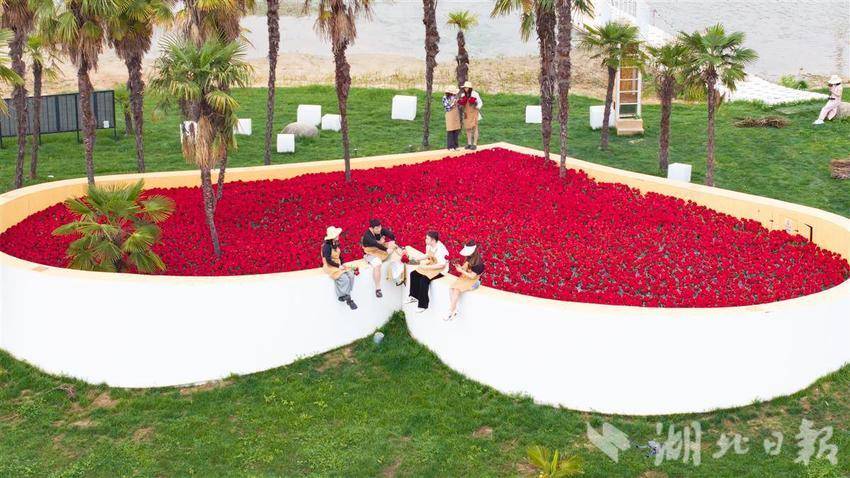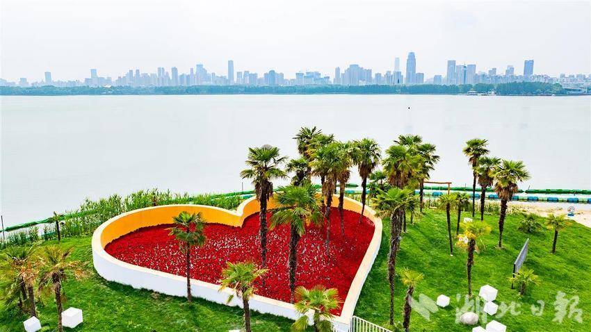 4月25日,为迎接即将到来的五一小长假,在武汉东湖沙滩景区东湖之心,近万朵玫瑰花被工作人员布置在心形装置里,吸引不少市民游客前来拍照打卡。从远处看,玫瑰花海宛如巨大的红色爱心点缀在东湖中央,格外浪漫。今年五一假期,东湖沙滩景区推出魔法泡泡秀、IP人偶巡游互动、湖光音乐会、沙滩星空电影院等丰富多彩的文旅活动,让游客们在大美东湖欢度五一假期。(湖北日报全媒记者何宇欣通讯员孟晓莉郑昕宇摄)