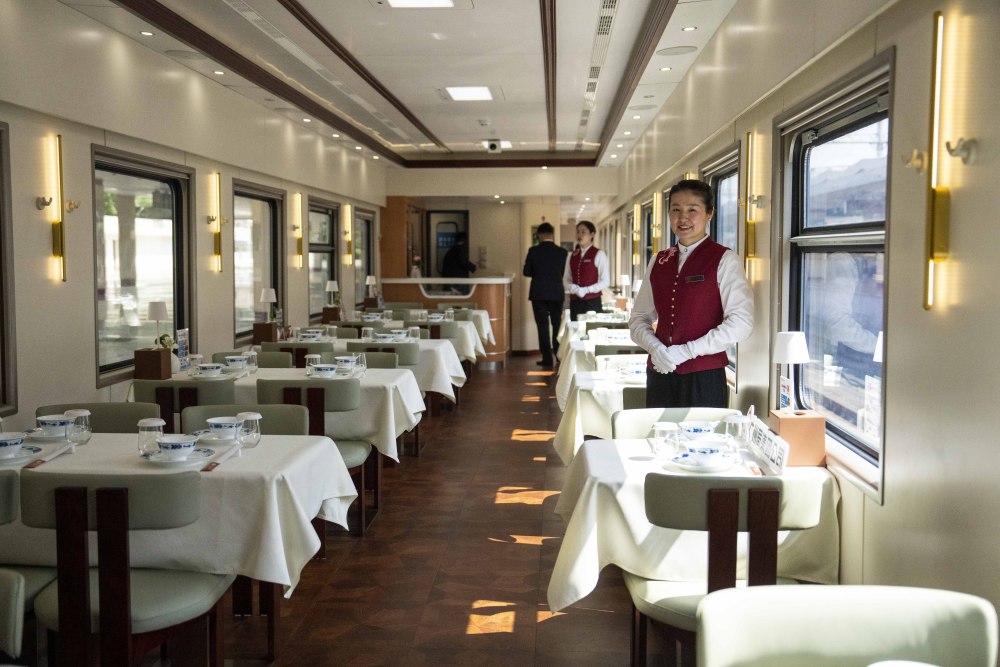 4月25日,在“南方列车·潇湘号”旅游专列上,乘务人员在等待旅客上车。新华社记者 陈思汗 摄