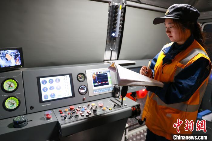 4月27日,中国铁路青藏集团有限公司西宁工务机械段养路机械驾驶员俞庆完成作业后填写验收单。 中新社记者薛蒂摄
