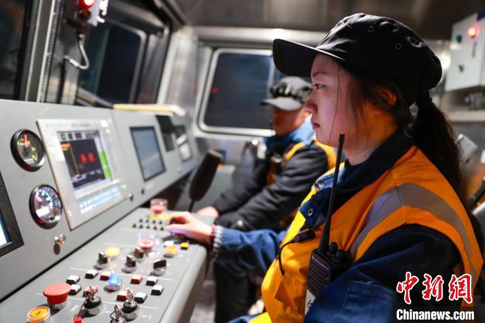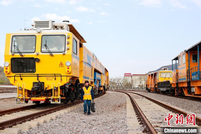 4月27日,中国铁路青藏集团有限公司西宁工务机械段养路机械驾驶员俞庆操作养路设备。 中新社记者薛蒂摄