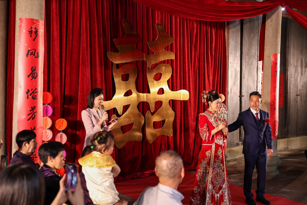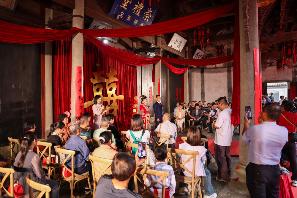 这是4月30日在同山镇唐仁村祠堂拍摄的婚礼仪式现场。新华社记者 江汉 摄