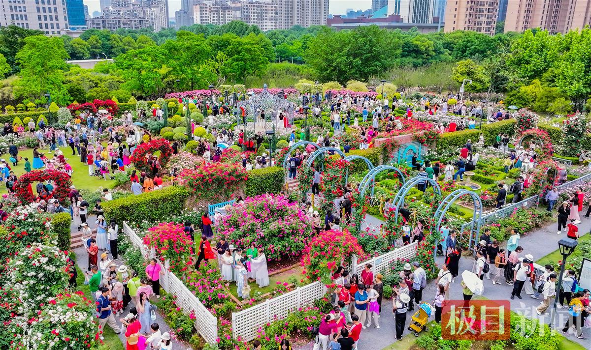 市民迷恋月季园的五彩世界
