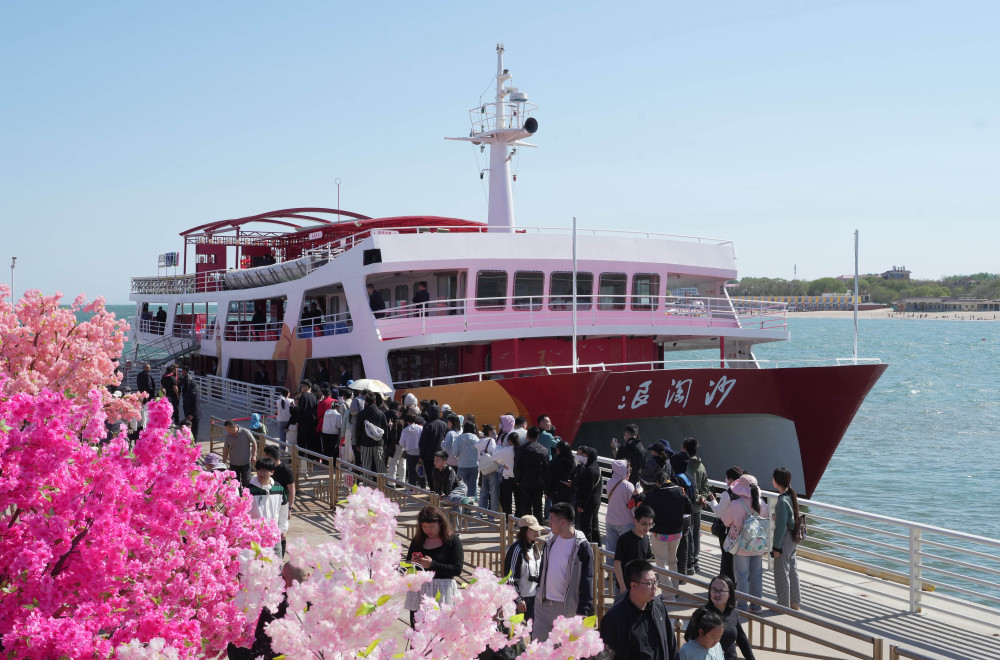5月1日,游客在河北省秦皇岛市北戴河区一旅游码头准备乘船出海观光。新华社记者 杨世尧 摄